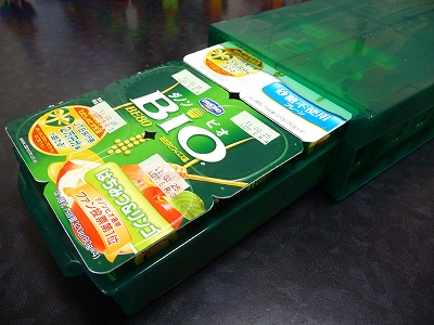 こんな風にダノンビオを4×2パック収納できる。